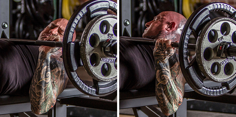 But if you want to de-emphasize the triceps – which reverse-grip presses used to be known for, as a triceps exercise – and hit more of the upper pecs, position your hands a bit outside of shoulder-width when you’re getting them situated at the beginning of the set.