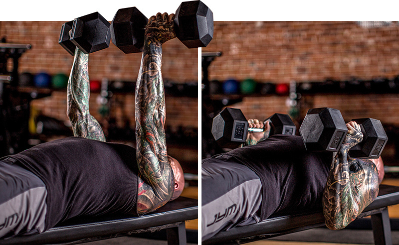 Dumbbell reverse-grip bench is a good option if you find it awkward to position your hands with the barbell, or if your wrists or shoulders bother you on the barbell version. With dumbbells, each hand is free and the movement is a bit smoother, so you may very well prefer it.